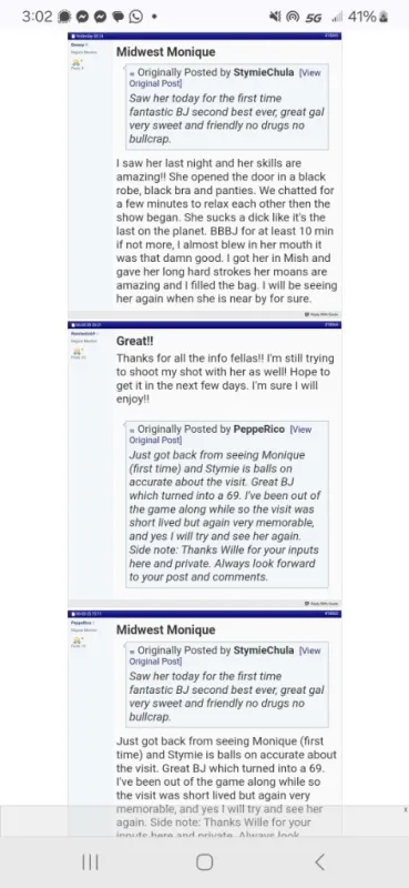 Hey guys, Midwest Monique here😘 im highly reviewed and great at what i do! Im clean and drug free and expect you to be as well. Generous Gentlemen only as I'm mature with no time for games. 250HR 180HHR SCREENING REQUIRED I DO NOT ANSWER QUESTIONS ABOUT SERVICES I DONT VIDEO VERIFY OR RESPOND TO WHATS APP MESSAGES 5'7" 180 38DDD All Natural Curvy Caramel Treat🤤 ***A lot of people aren't receiving my response to their messages, so if u text and don't hear back. try calling please!!